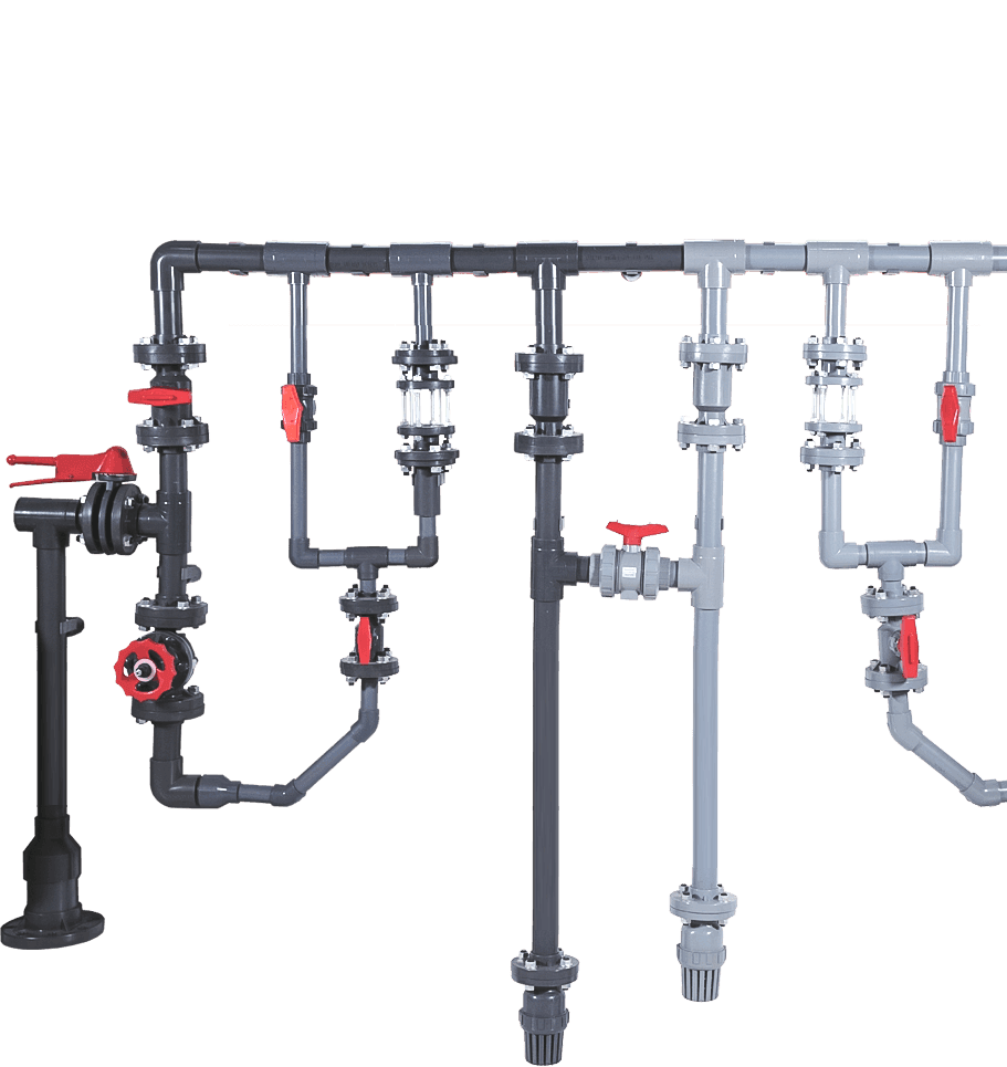 ????專業(yè)生產(chǎn)三大系列產(chǎn)品(閥門、管材/管件、泵)&五種材料(CPVC、UPVC、PVDF、PPH、FRPP)